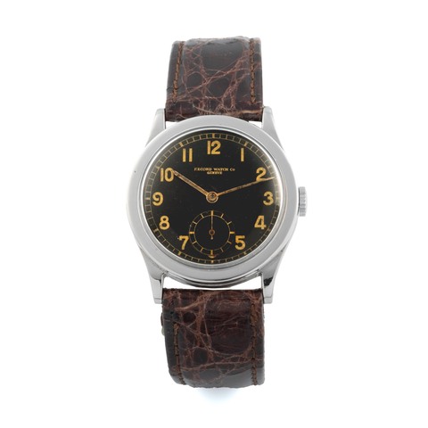 RECORD WATCH CO., SWITZERLAND, "CALATRAVA", BLACK DIAL, STAINLESS STEEL