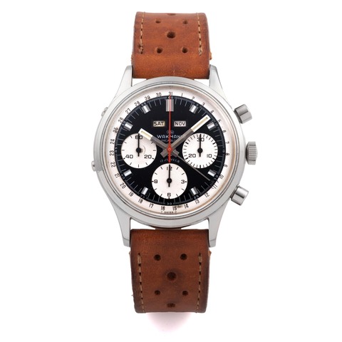A fine and very rare, well-preserved, stainless steel, manual wind chronograph wristwatch with pulsation scaleGrading System: AA