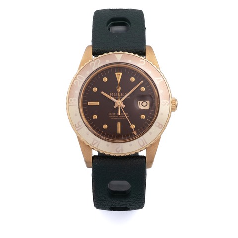 ROLEX, SWITZERLAND, REF. 1675, GMT-MASTER, NO CROWN GUARDS BROWN DIAL, 18K YELLOW GOLD