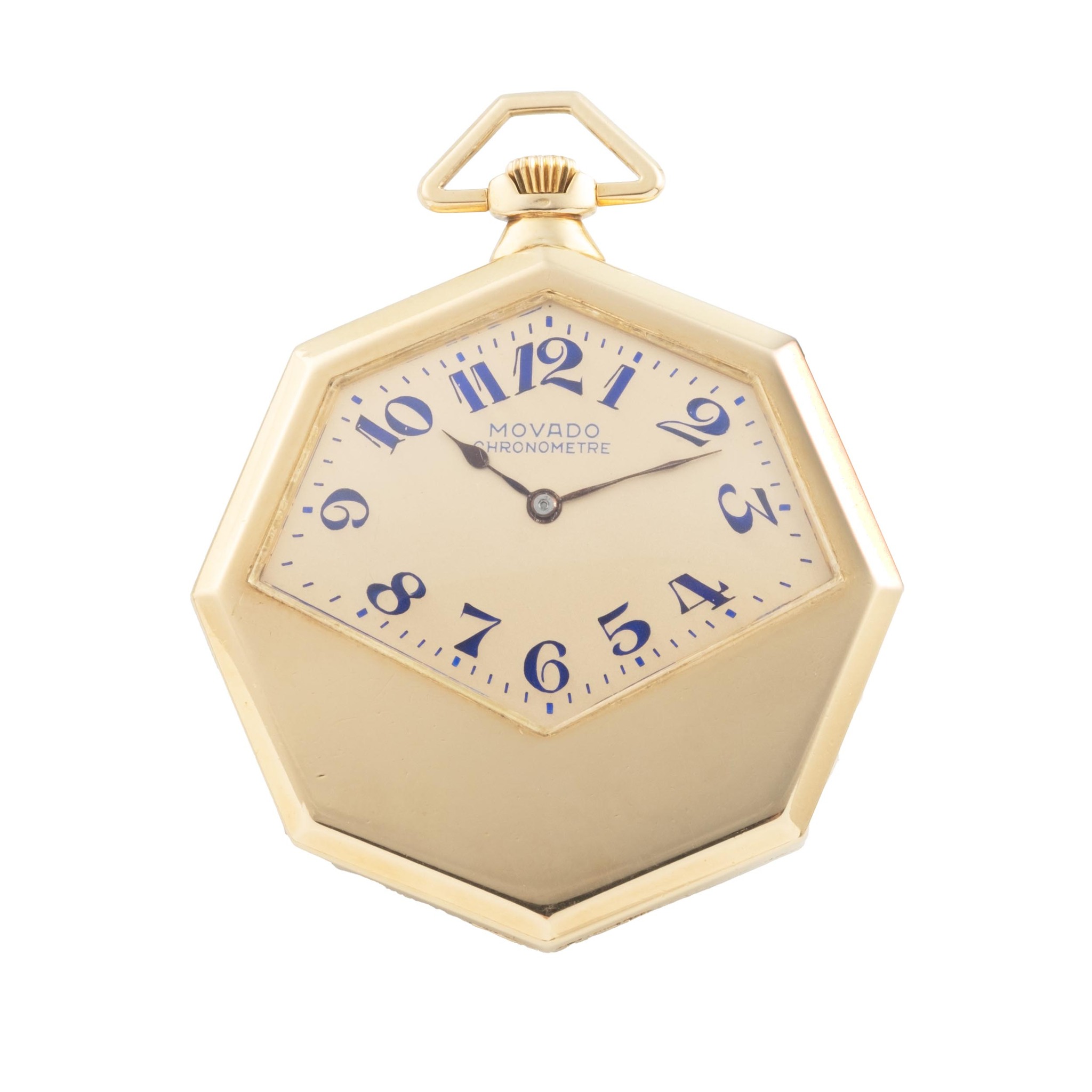 A fine and elegant, 18k yellow gold, manual wind open-face, octogonal shaped keyless-winding, dress watch.